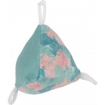 Jouet éco-conçu pour chat ETHI'CAT. Jouet pyramide en tissu recyclé. Tissu avec motif feuille. Fabriqué à partir de 88% minimim de matières recyclées (dont polyester recyclé). Contient de l'herbe à chat pour plus d'attractivité.