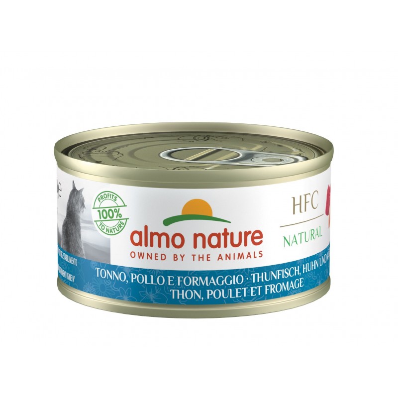 La gamme HFC Natural est préparée avec des ingrédients HFC, soit des ingrédients à l'origine propres à la consommation humaine et désormais utilisés comme aliments pour chats, garantissant le même niveau de qualité que vous choisiriez pour vous - même. Cette gamme est composée d'un large éventail de pâtées complémentaires préparés avec de la viande ou du poisson HFC à 75%. Simplement cuites dans du bouillon, les recettes HFC Natural sont idéales pour garantir l'hydratation naturelle de votre chat. Almo Nature suggère d'alterner les différentes sources de protéines pour assurer une alimentation variée et satisfaire les goûts de tous les chats, même les plus exigeants ! La boîte de conserve en étain, ainsi que l'étiquette en papier, sont toutes deux recyclables et peuvent être réutilisées comme matière première pour d'autres emballages si elles sont éliminées correctement. HFC Natural - délicieux filets de viande ou de poisson HFC en bouillon - est disponible en boîtes de 70 g. Almo Nature est la marque activiste détenue à 100% par la Fondation Capellino.