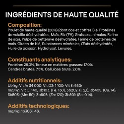 PURINA PRO PLAN avec OPTIBALANCE est une combinaison d'ingrédients spécifiquement sélectionnés, avec des teneurs adaptées en fonction de l'âge du chien et de sa taille.