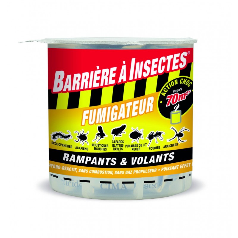 Fumigène hydro-réactif radical contre les infestations et sans risque d'explosion ou d'inflammabilité. Sans flamme ni combustion. son efficacité est immédiate et totale. Le brouillard émis posséde un fort pouvoir pénétrant et ne produit pas de suie ou de dépôt résiduel. Son action de débusquage des insectes dans les interstices et fibres des moquettes renforce l?effet choc et l?efficacité totale du traitement. S?utilise dans tous types de locaux après avoir retiré les plantes vertes et les animaux y compris les animaux en aquarium et terrarium. Pot de 10 g permet de traiter jusqu'à 70 m² (90 à 170 m3).