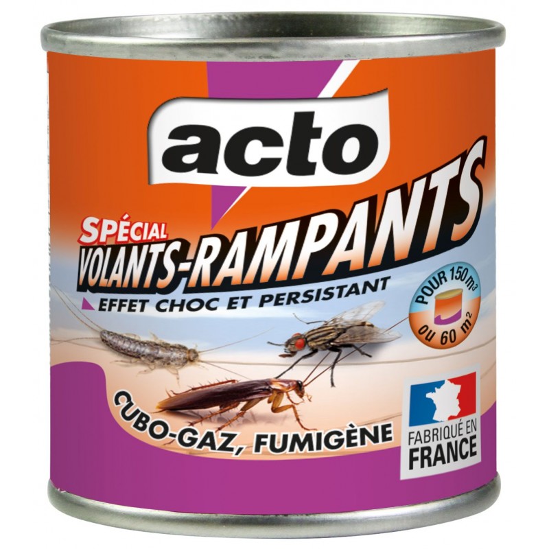 • Contre les infestations de blattes, mouches, moustiques, mites, puces, punaises, acariens, cloportes, poissons d'argent, scolopendres... • Fumigène insecticide, pour traiter la totalité d'une pièce : 150 m3, soit une surface d'environ 60 m2. • Double action : effet choc + effet persistant 1 mois.