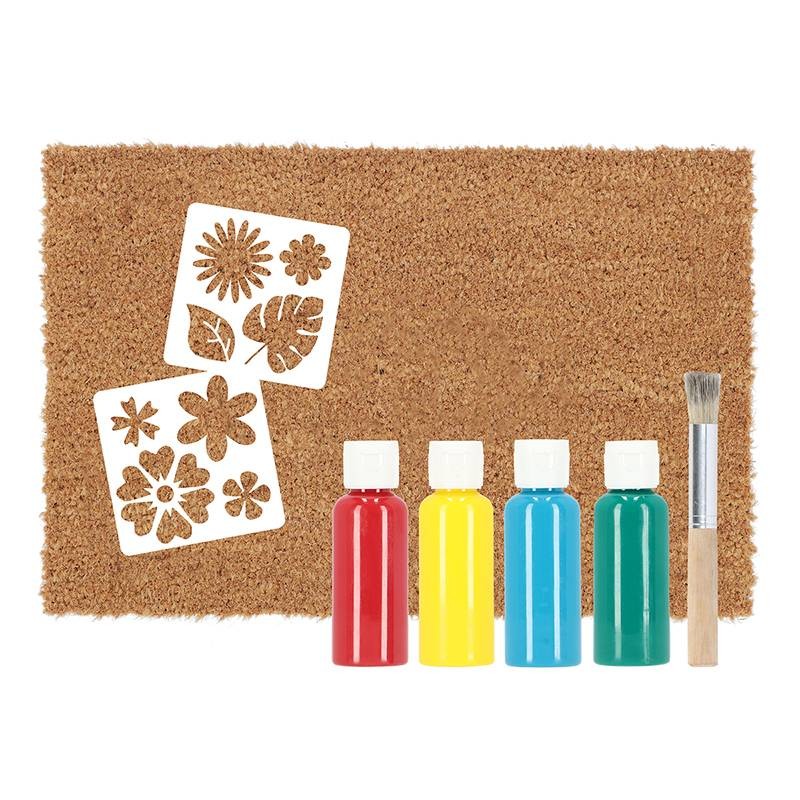 Dans le commerce. vous trouverez une large sélection de paillassons. mais il est encore plus amusant et facile de réaliser son propre paillasson. Ce set contient un paillasson en fibre de coco. des feuilles de pochoir. un pinceau et de la peinture pour paillasson. Avec un peu d'imagination. ce set vous permettra de créer le plus beau paillasson - kit comprenant feuilles de pochoir- pinceau et peinture- stimule la créativité -