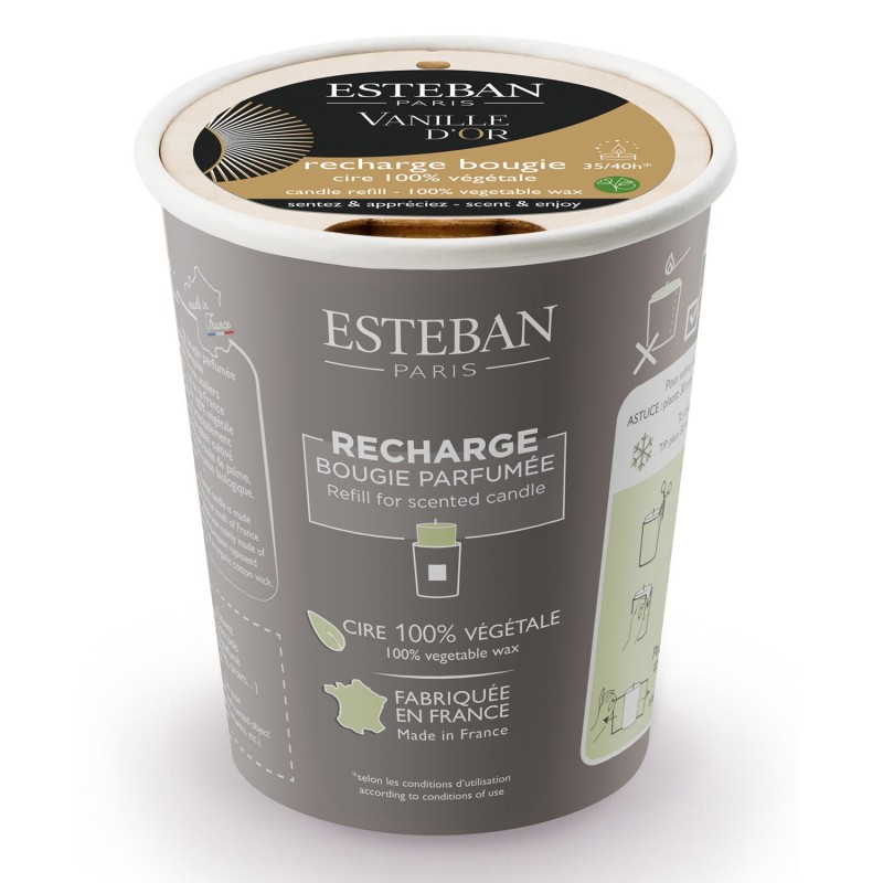 Cette recharge 180 g prolonge la vie de votre bougie. Variez aussi les parfums comme bon vous semble. Ce produit est compatible avec toutes les bougies parfumées 180 g de la marque Estéban(Pot d'un diamètre 7,5 cm - hauteur 9 cm). Mise en cire artisanalement en France dans les ateliers de la marque Estéban. Cire 100% végétale. Mèche en coton. Verre et matériaux d’emballage 100% recyclables. Pour utiliser votre recharge à bougie, placez-la entre 30 et 60 minutes au réfrigérateur ou au congélateur. Amorcez la découpe de l'emballage avec une paire de ciseaux. Déchirez de haut au bas suivant les pointillés. Ouvrez et placez la recharge dans le contenant après avoir retiré le buvard de protection. Utilisez la bougie entre 1 à 3 heures. Puis pour l'éteindre et préserver la qualité de l'ambiance parfumée, plongez la mèche de la bougie quelques secondes dans la cire. Pour garantir une combustion harmonieuse dans le temps, centrez et recoupez la mèche de la bougie à 0.5 cm à la fin de chaque utilisation.