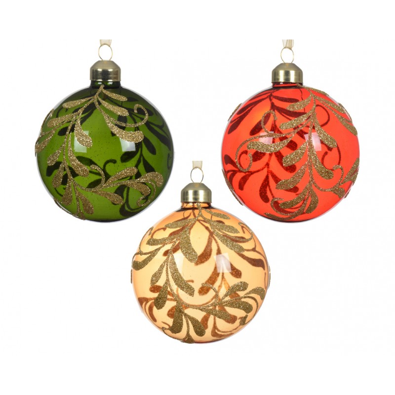 Boule Branches Paillettes Orange/Vert En Verre Ø8 - Vendu À La Pièce-DECORIS