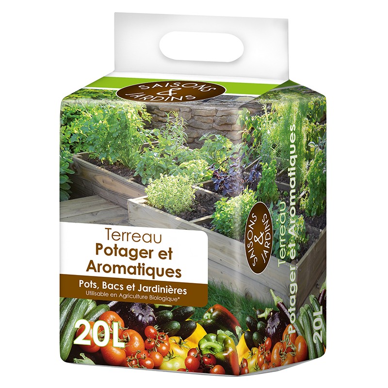 Enrichissement et structure adaptés au repiquage de plantes légumes et aromatique en pots et potager au carré. 35 % du produit est composé de matière renouvelable ou issue de filière de valorisation des déchets.