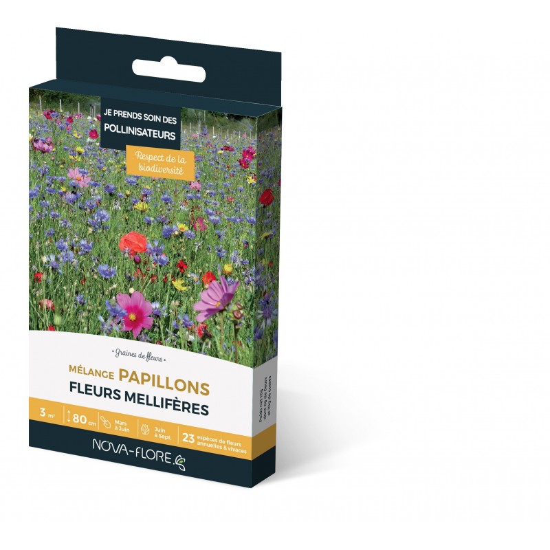 JE PRENDS SOIN DES POLLINISATEURS Graines de fleurs MÉLANGE PAPILLONS Fleurs mellifères Étui 3m2 N-F