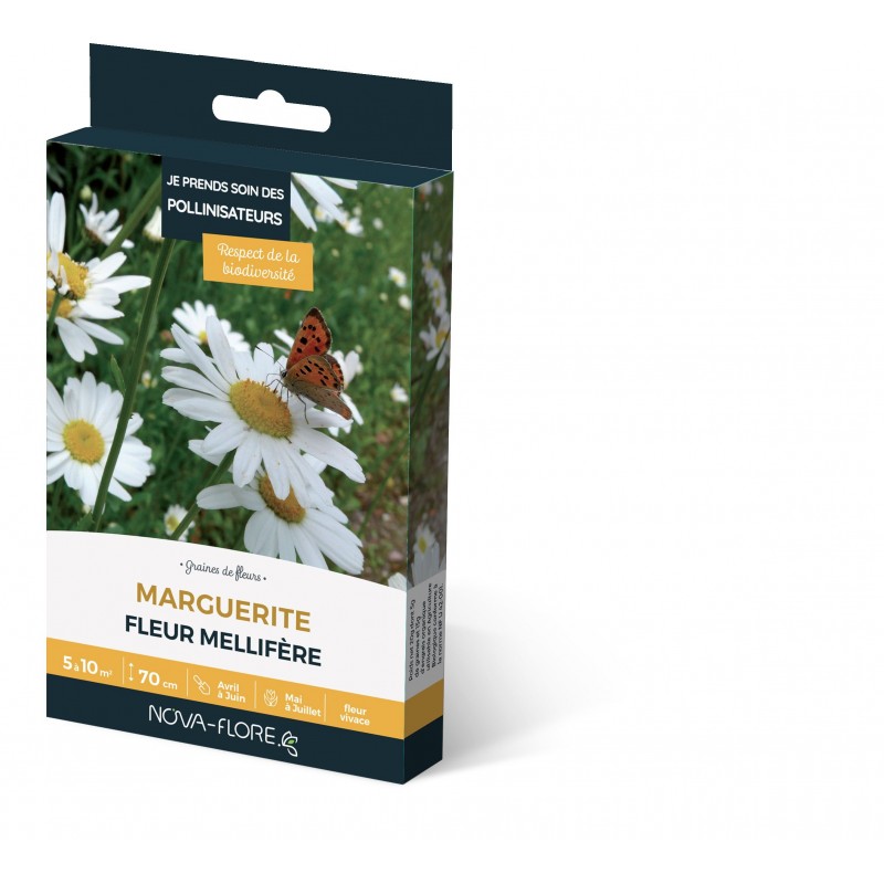 JE PRENDS SOIN DES POLLINISATEURS Graines de fleurs MARGUERITE Fleur mellifère Étui 5 à 10m2 N-F