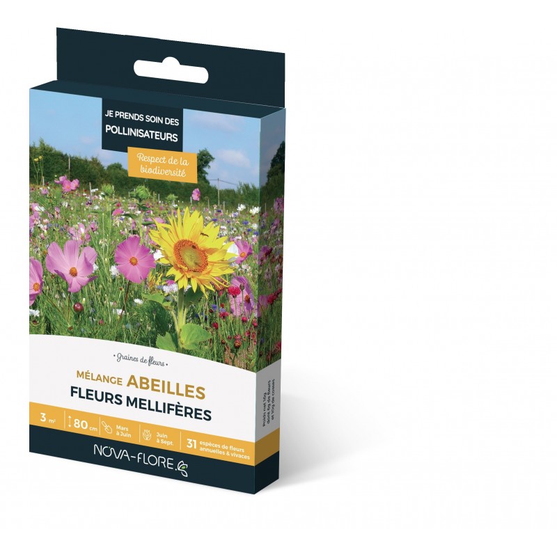 JE PRENDS SOIN DES POLLINISATEURS Graines de fleurs MÉLANGE ABEILLES Fleurs mellifères Étui 3m2 N-F