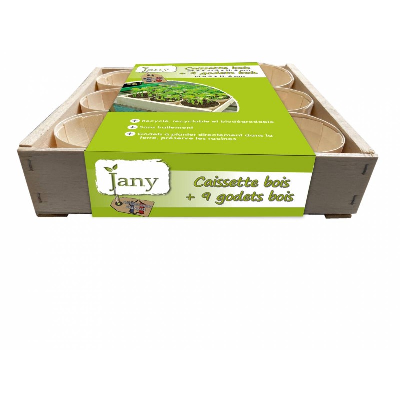 Caissette bois + 9 godets bois 27.5X26.5X6