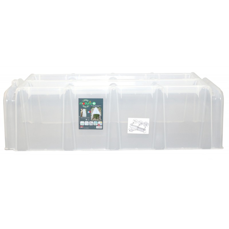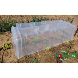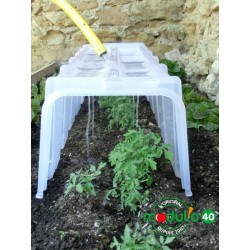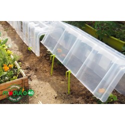 La mise en place de votre mini-serre est instantanée, ses éléments empilables très faciles à déplacer et à ranger. L’épaisseur des parois rigides accentue l’effet de serre et maintient vos cultures à l’abri des gelées printanières et des animaux nuisibles. Les bacs de récupération d’eau de pluie ou d’arrosage sont intégrés. Aucune manutention n’est utile durant toute la période de forçage. Les embouts vous permettent une aération à souhait pour vos plantations. Les piquets de maintien fixent les tunnels au sol (anti soulèvement) et permettent également de surélever le tunnel pour l'aération. (Embouts et piquets vendus séparément) En Polypropylène et traité anti-UV - Garantie 5 ans sur la tenue aux UV. Dimensions unitaires 105x39x30 cm. Fabriqué en France en plastique recyclable Avantages produit : Protège et accélère la croissance des semis et plantations. Solide et empilable.
