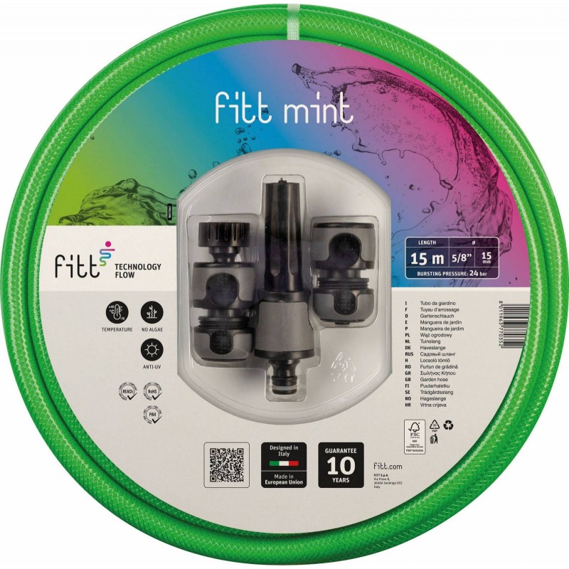 Tuyau vert à 4 couches guipé. idéal pour un usage domestique dans le secteur du jardinage. Avec couvrant anti UV et couche intérieure noire anti-algues.